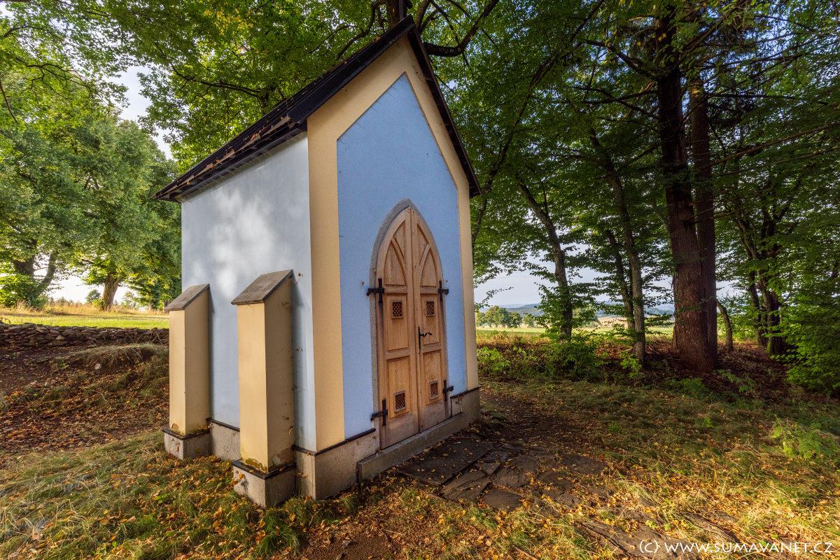 Nově obnovenou kapličku najdeme v lese nad Horním Staňkovem. Pochází z